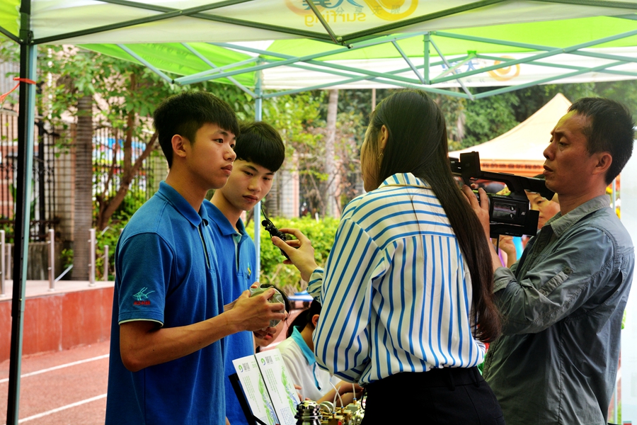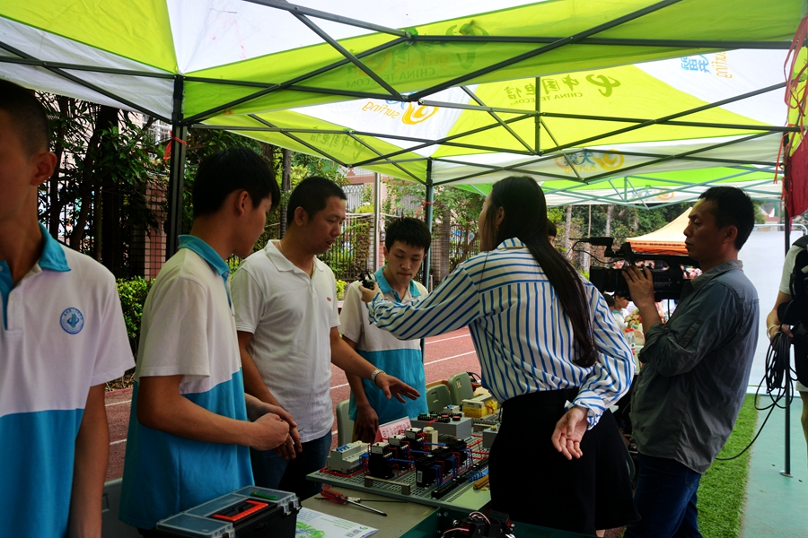 在活动中,福州市教育局念副局长专门到学院的展位,向在5月10日刚刚结束的2018年全国职业院校技能大赛“数控综合应用技术”赛项中获得金牌的叶祖彪、方如、周青龙三位同学表示慰问,并向他们为福州市现代制造类项目国赛金牌零的突破表示祝贺。念副局长说,这是澳门永利集团的自豪,也是福州市职业教育的荣光。三位同学还接受了福州电视台的专访,为整个活动增添了浓墨重彩的一笔。学院的展位及专业成为了许多学生和家长的关注点。