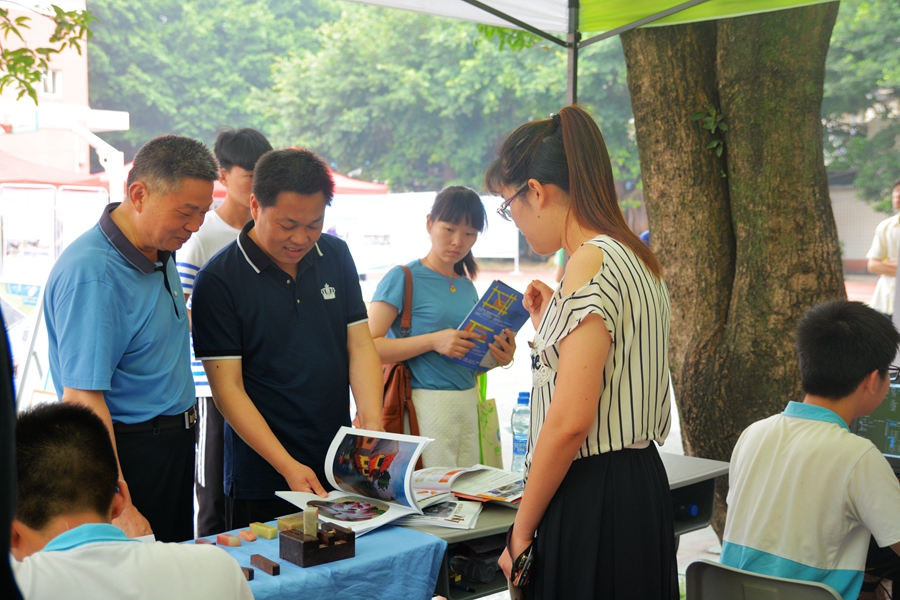 5月19日上午学院组织参加了在福州文教职专举办以“职教改革四十年 产教融合育工匠”为主题的2018年福州市职业活动周暨中职校招生咨询会。学院领导、各系负责人及部分师生参加了活动。学院精心组织,展示内容覆盖学院多个专业,从多方面展现学院的办学成果和学生的技能风采。商贸服务系幼教专业手工制作;机械工程系数控加工产品展(叶轮平台、气动飞轮、车加工件、铣加工件);信息工程系电脑板绘、影视后期制作、寿山石雕展示、素描、色彩、国画、平面设计作品、动漫速写;电气工程系PLC四层电梯控制系统、机械手控制运行、电力拖动控制线路板等技能技艺展示。精湛的机械模型制作精品让他们深切感受到高端机械制造的魅力,精美的手工制作作品让参会的学生及家长赞不绝口。