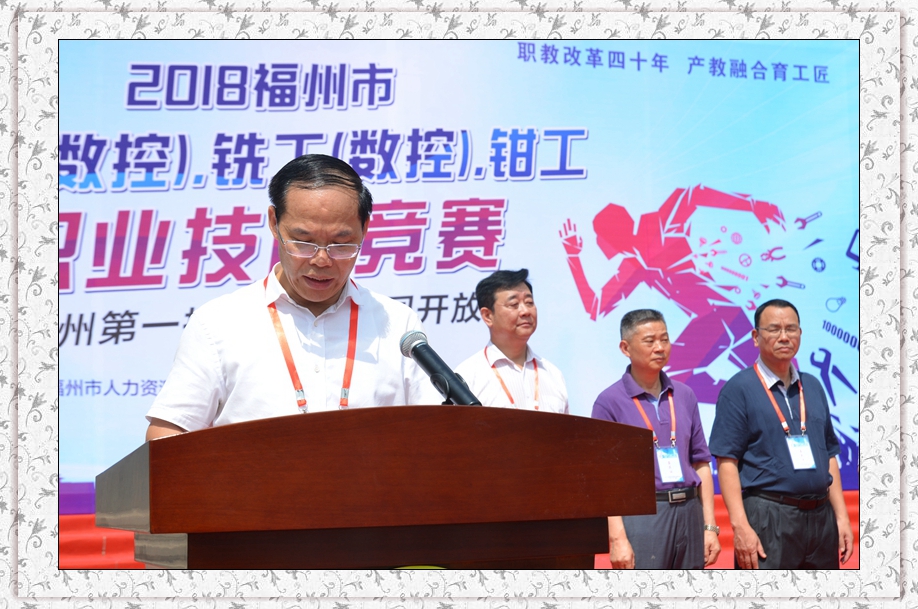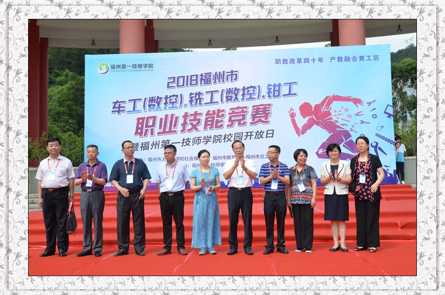 6月9日,澳门永利集团再次满载着福州市人社局、福州市教育局、福州市总工会、以及兄弟学校的信任,荣幸承办2018年福州市车工(数控)、铣工(数控)、钳工职业技能竞赛,又恰逢学院举办“2018年校园开放日”活动,福州市人社局党组书记、局长王命瑞,福建省人社厅职建处处长罗永生、调研员林千红、福州市中华职教社调研员陈美华、福州市人社局党组成员、副调研员林继承、以及福州市教育局职成处江堃俤处长、福州市职教中心霍尚军书记等相关单位部门负责人出席了开幕式。