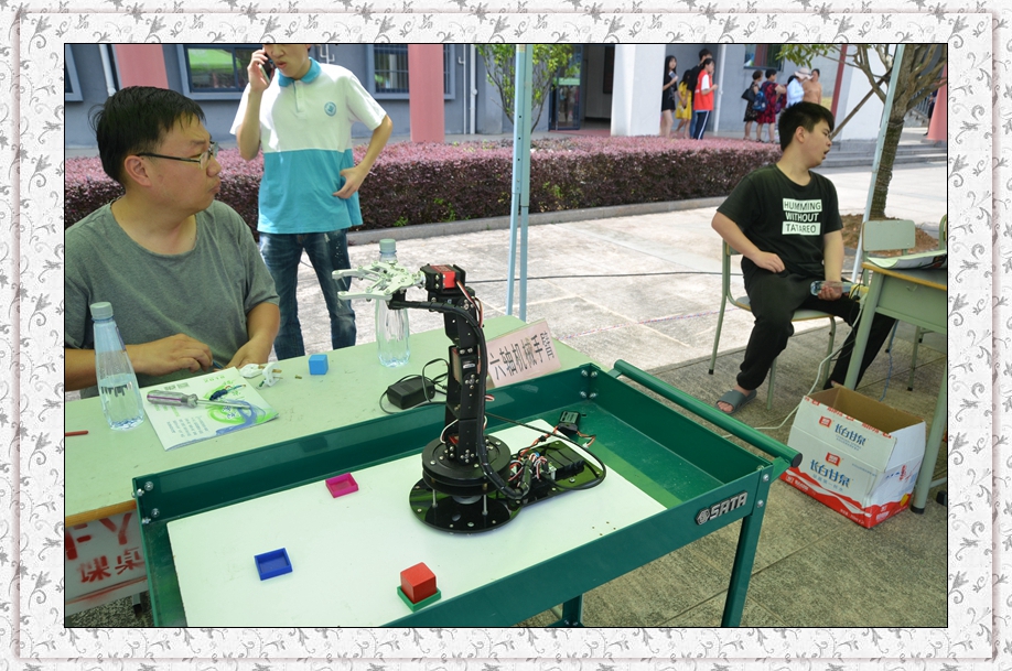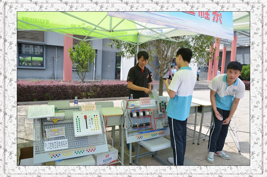 工业机器人展台前也围满了学生和家长,不少家长拿出手机拍摄照片、视频,记录了活动过程。“啧啧,这是高科技”,电子专业的同学们在有模有样地调试电路,让很多家长坚信“这里一定能学到技术”。