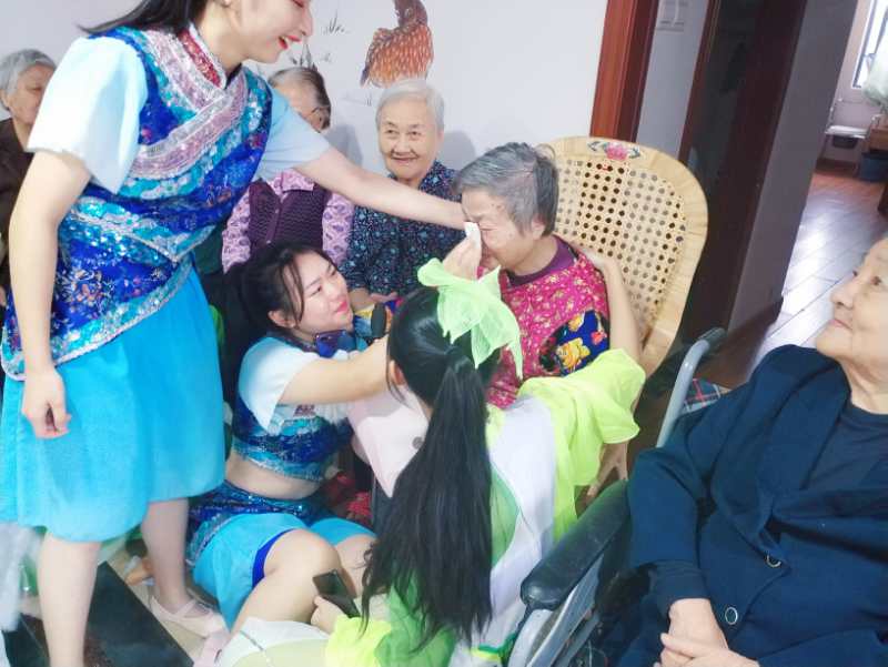 活动中,同学们为老人们送上了精心编排的歌舞、快板和小品等节目。节目内容丰富多彩,精彩绝伦。小志愿者们用心的表演让台下老人们露出了幸福的笑脸。在场的老人们感激不已,纷纷与学院学生合影留念。