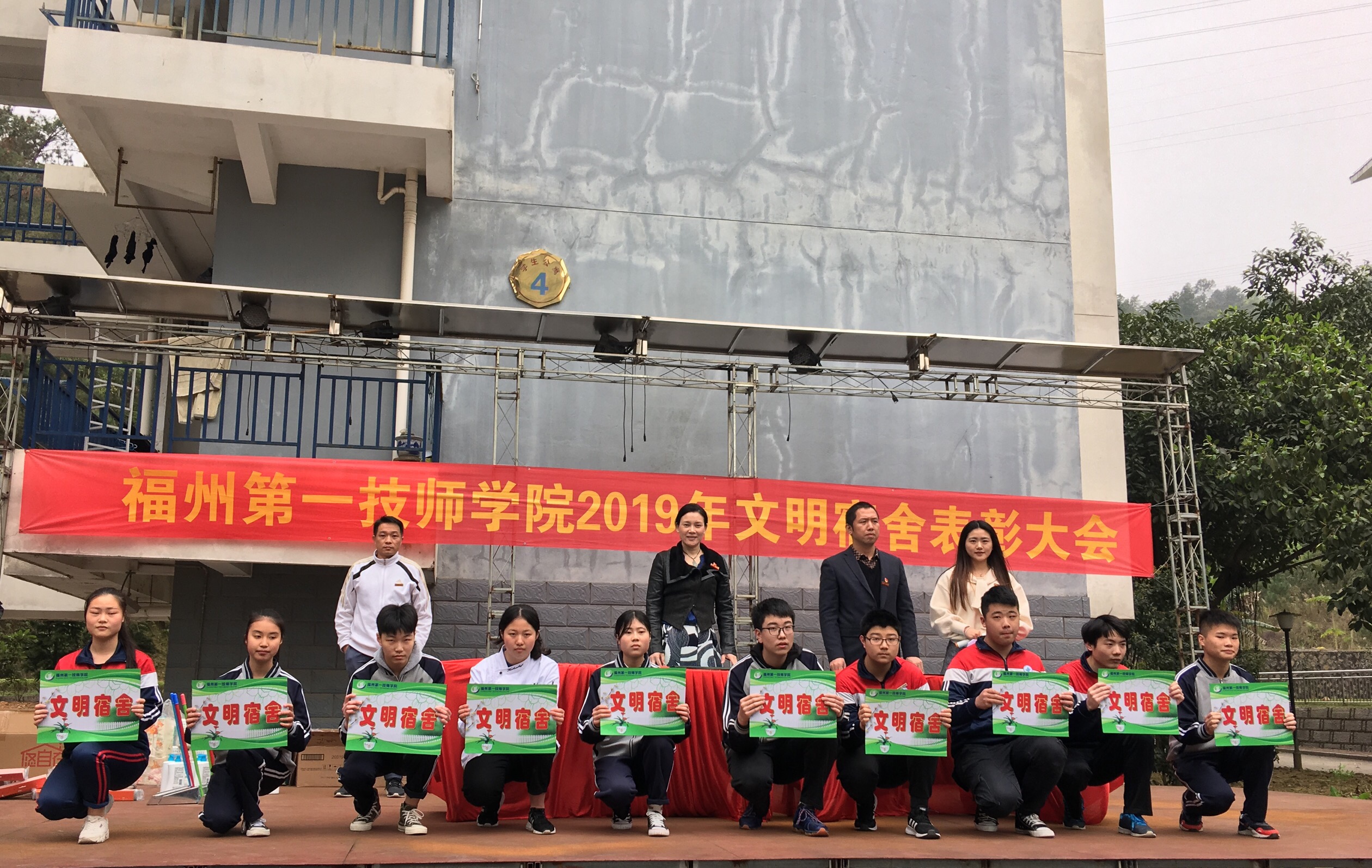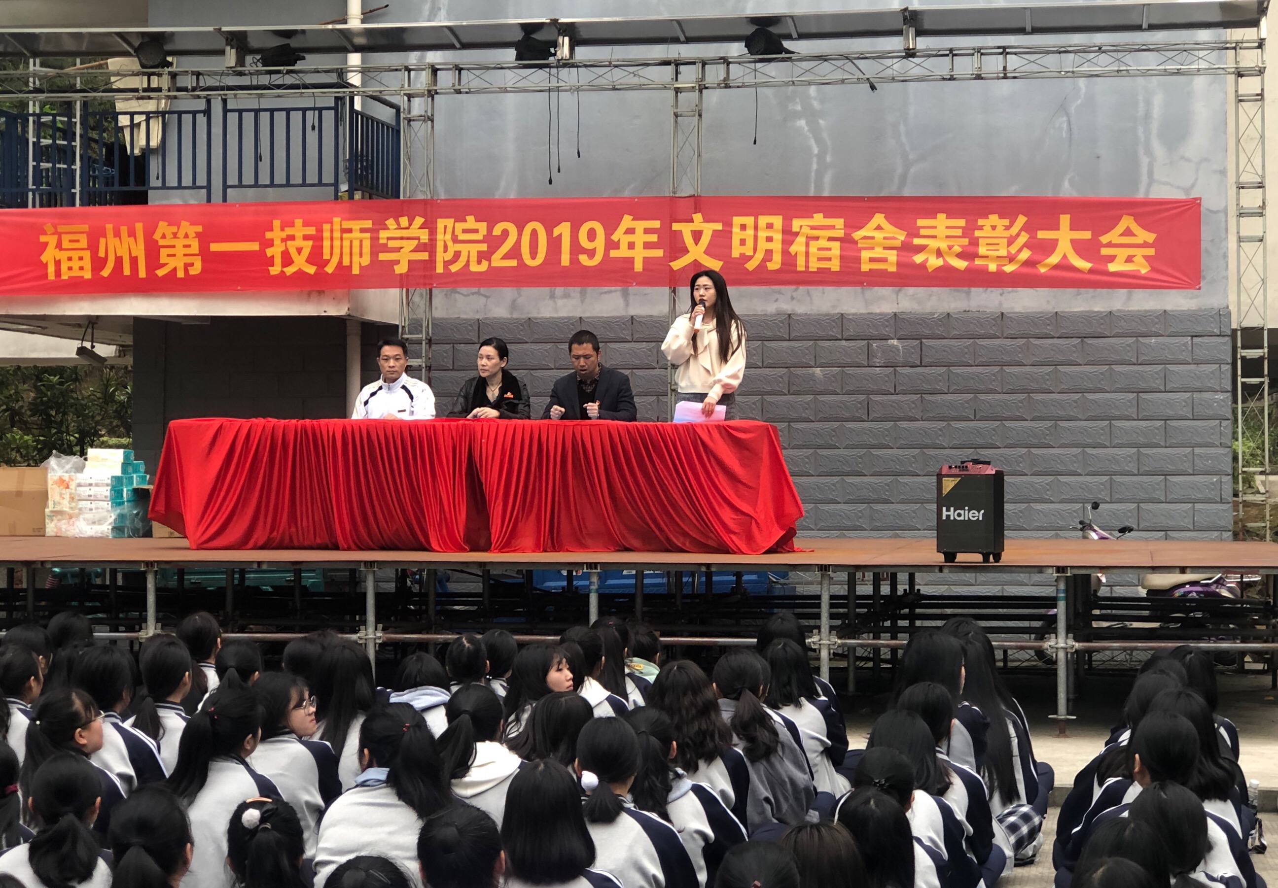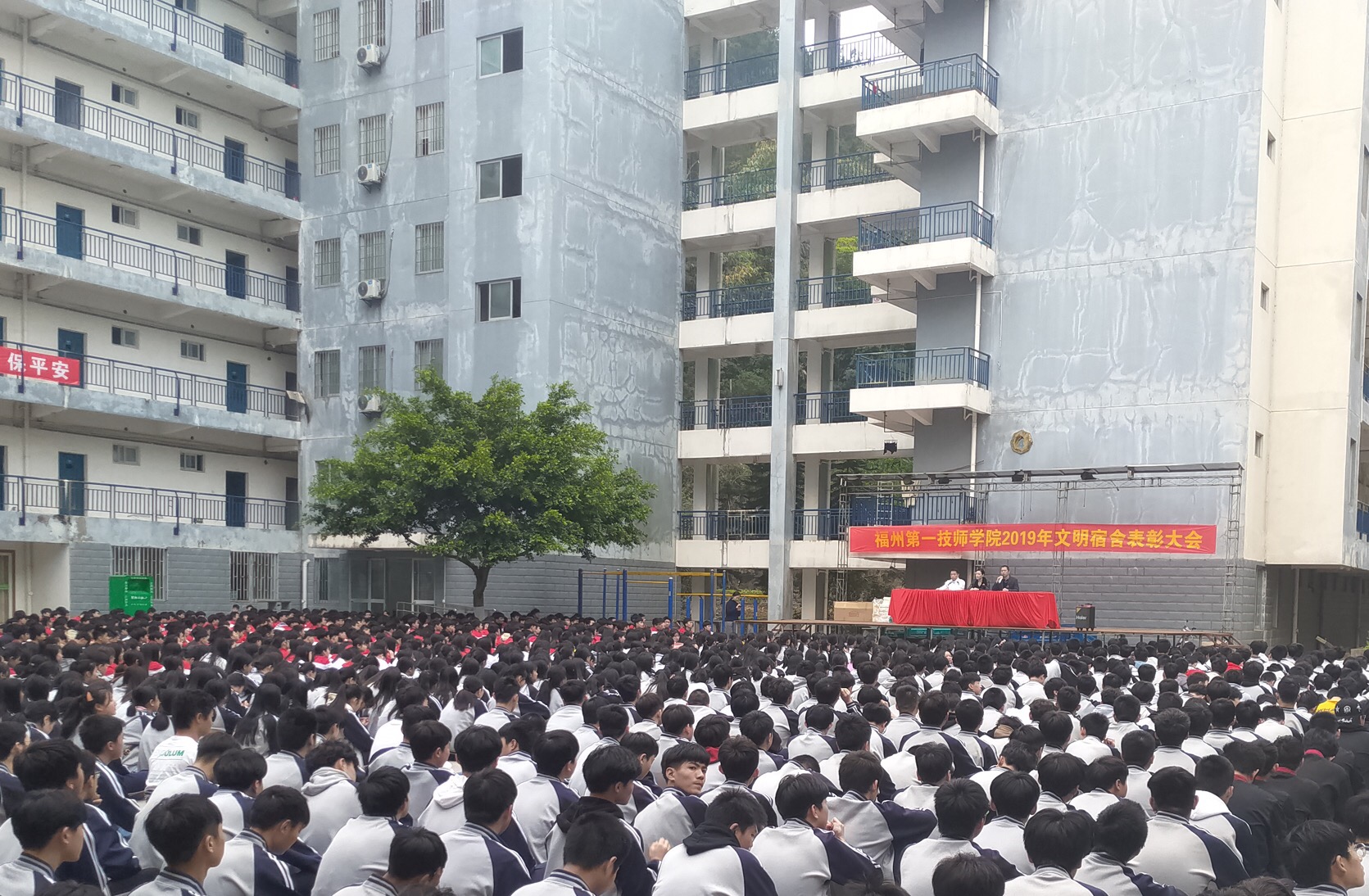 3月29日中午,我院2019年“文明宿舍”评选表彰大会在学生生活区广场举行。学生处处长陈琼、副处长高国栋、生管老师代表、教官和全体住宿生参加了大会。
