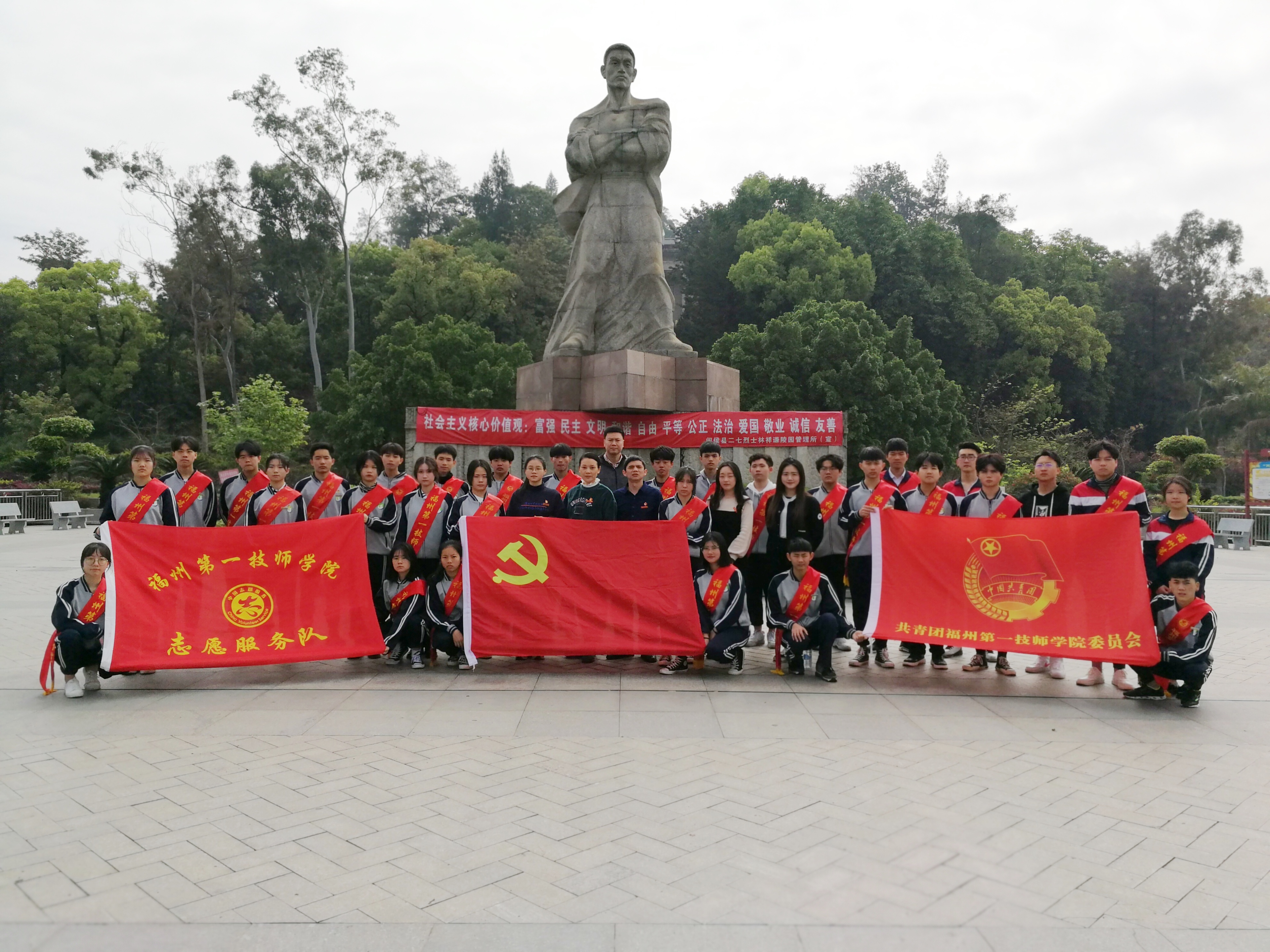 “不忘烈士抛忠骨,民族复兴中国梦”。3月30日上午,在清明节到来前夕,为缅怀革命先烈的丰功伟绩,学习艰苦奋斗的革命精神,院党委、院学生处和团委共同组织开展一年一度的“清明祭英烈”主题教育活动,共有党员、团员、学生干部和志愿者等师生代表一行38人前往闽侯县林祥谦烈士陵园祭拜先烈。