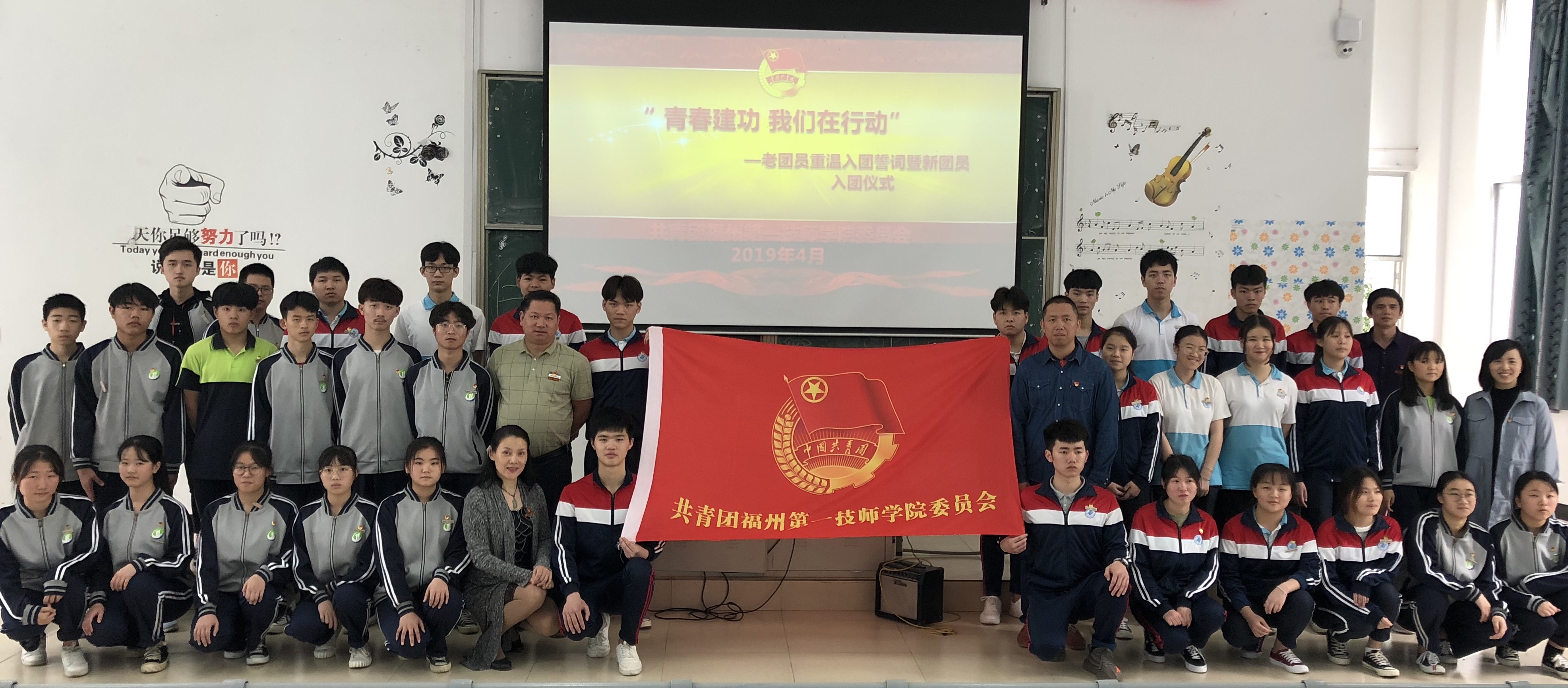 最后,大家齐声高唱《团歌》。入团仪式在一片嘹亮雄壮的歌声中圆满落幕!
