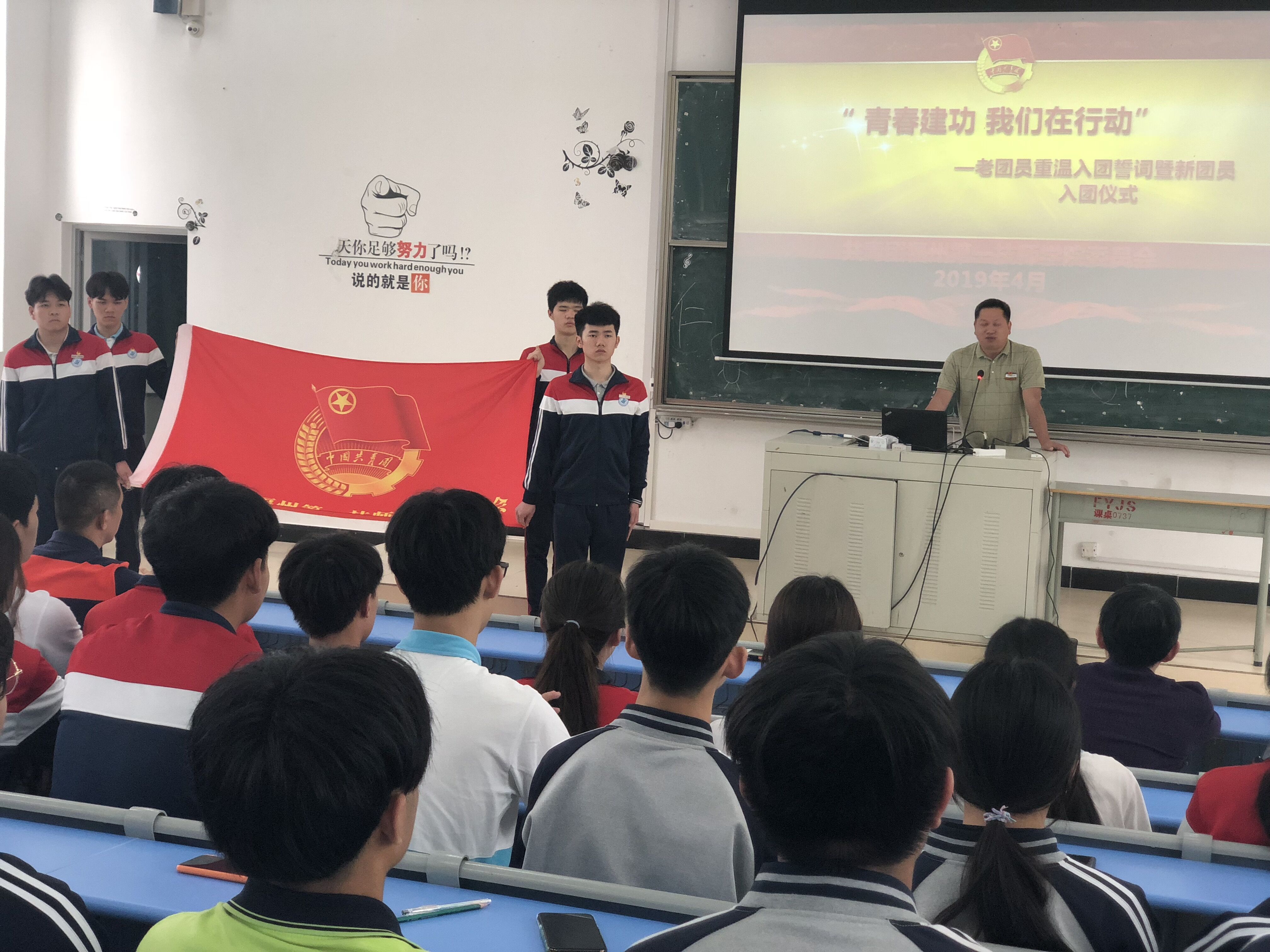 4月29日中午,作为我院纪念“五四运动”100周年系列活动之一,院团委于青春影院举行了“青春建功,我们在行动”新团员入团仪式。院党委副书记、副院长张挺青和党员教师代表、新老团员学生共100多人参加了活动。